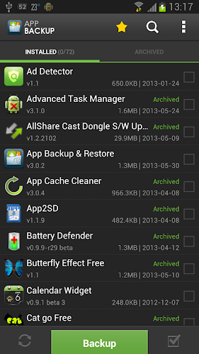 *** Notice: App Backup cannot backup data or settings of apps for you, but it only backup the apk files.