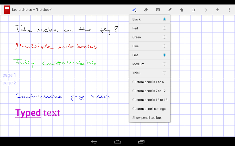 : LectureNotes is an Android app for note-taking by handwriting on the screen, in particular with a stylus.LectureNotes is an Android app for note-taking by handwriting on the screen, in particular with a stylus.